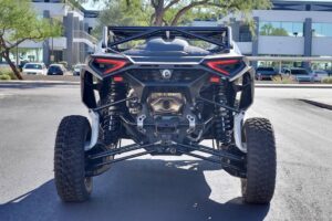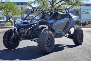 This is a fully welded, bolt-on, roll cage for the Can-Am Maverick R 2-seater. This roll cage is TIG and MIG welded using high quality DOM steel throughout. The chassis clamps are all TIG welded, and the rest of the cage is MIG welded. Main tubes are 1.75″ diameter .120″ wall thickness, internal tubes are 1.75″ diameter .095″ wall thickness, rear intrusion bars are 1.5″ diameter .095″ wall thickness, and front intrusion bars are 1.25″ diameter .095″ wall thickness. Our roll cage uses all stock mounting locations, and we tie the C-Pillar into the chassis. Racing inspired design provides exceptional safety for driver and co-rider utilizing the strength of triangles. This is truly the best roll cage on the market. All tubes are mandrel bent and laser cut for exact fit. Powder Coating is available at an additional cost. Optional precision bead rolled aluminum roof comes with all mounting hardware and tabs welded to the roll cage