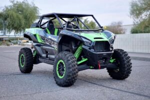 Race Inspired, fully welded, bolt-on, roll cage for the KAWASAKI TERYX KRX1000. This roll cage is TIG and MIG welded using high quality DOM steel throughout. Main tubes are 1.75″ diameter .095″ thick and cross tubes are 1.25″ diameter and .095″ thick. Our Sport Cages use all stock mounting locations. Trophy Truck inspired design provides exceptional safety for driver and co-rider utilizing the strength of triangles. All tubes are mandrel bent and laser cut for exact fit. Powder coating available. Optional precision bead rolled aluminum roof comes with all mounting hardware and tabs welded to the roll cage.