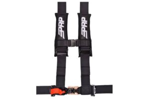 This 3”, 4 point seat belt has sewn in pads for comfort, all black hardware for cool styling and EZ adjusters on the shoulders. The EZ adjusters allow you to adjust your shoulder straps quickly and even if they are dirty or muddy.
