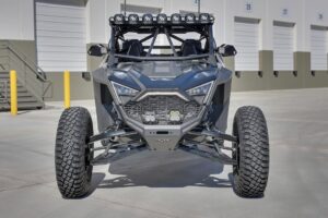 Laid back with the dunes in mind, this is a fully welded, bolt-on, roll cage for the Polaris RZR Pro R 4 (2022+). This roll cage is TIG and MIG welded using high quality DOM steel throughout. The chassis clamps are all TIG welded and the rest of the cage is MIG welded. Main tubes are 1.75″ diameter .120″ wall thickness, internal tubes are 1.75″ diameter .095″ wall thickness, rear intrusion bars are 1.5″ diameter .095″ wall thickness, and front intrusion bars are 1.25″ diameter .095″ wall thickness. Our roll cage uses all stock mounting locations. This is our most popular cage for the everyday UTV enthusiast. This is truly the best roll cage on the market. All tubes are mandrel bent and laser cut for exact fit. Optional precision bead rolled aluminum roof comes with all mounting hardware and tabs welded to the roll cage.
